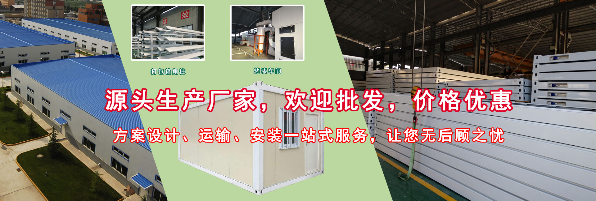 文創(chuàng)鋼結構工程有限公司專業生產,活動板房,集裝箱房,鋼結構,輕鋼別墅,移動廁所,活動圍墻,巖棉板,是一家集設計、生產、建造、營銷一體化的專業智能化集成房屋獨資企業,服務市場包括珠三角廣州、深圳、東莞、佛山、中山、肇慶,咨詢合作執(zhí)線: 139 2872 2202